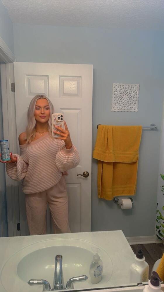 I’m actually obsessed with this sweater it’s so cute and was the perfect fit for Thanksgiving! Super comfy flattering and I still looked cute after eating all the food!