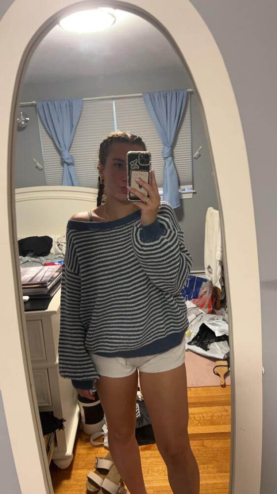 Literally amazing I love it so much! I sized up and it’s super comfy not see-through and made from the softest yarn ever You need this! I’d totally pair it with blue jean shorts or leggings for school, and maybe blue jeans for church Love love love it!
